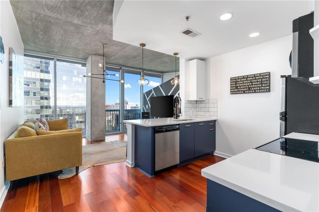 BEST VALUE OPPORTUNITY IN BUCKHEAD! THE REALM - CENTRALLY LOCATED NEAR PIEDMONT/PEACHTREE INTERSECTION - RENOVATED KITCHEN AND PRIMARY BATH! 18th-FLOOR BEAUTIFUL BALCONY VIEWS - This 1-bedroom, 1-bathroom condo offers over 730 square feet of exceptional living space with a highly motivated seller ready to close quickly. This condo boasts smart design and fine living with an open-concept layout. The renovated kitchen is thoughtfully equipped with stainless steel appliances, quartz countertops, and ample cabinetry, perfect for culinary enthusiasts. The interior is complemented with floor-to-ceiling windows that provide abundant natural light and Northern Buckhead and Dunwoody skyline views. Retreat to your private balcony and soak in the skyline views each and every day. This could also be your chance to own your own private pied-à-terre where you can "have a foothold" in a different location whether for work, leisure, or convenience! And there's no need to trek to the laundromat, as a washer and dryer are conveniently tucked inside your unit. This Realm features an array of desirable amenities including a fitness center, 9th floor rooftop swimming pool, common outdoor space, and a 24-hour concierge service. Enjoy the luxury of a deeded, assigned parking space within a gated community, with both garage and elevator access. Don't miss the chance to own this gem with a motivated seller eager for a quick transaction. Schedule your viewing today to experience the best value in Buckhead!