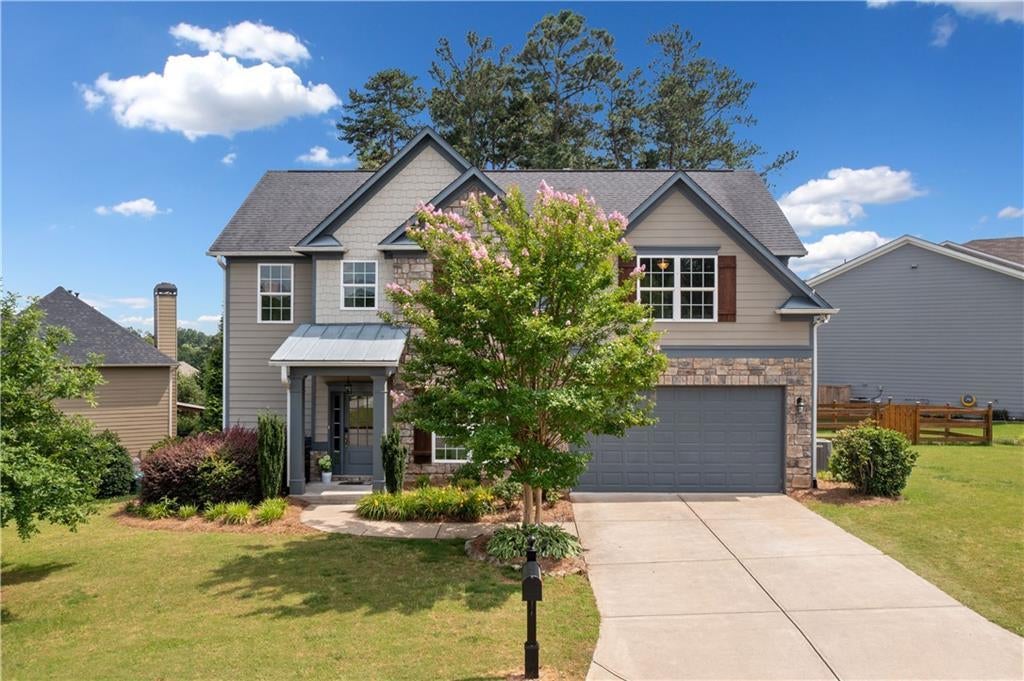 Welcome to your dream home! This stunning 5 bedroom, 3 bath residence is located in one of the most desirable neighborhoods and is move in ready. Nestled within a charming roundabout, this property offers unique combination of privacy, accessibility, and connection to community life. Right in front of the home is a thoughtfully designed green space with a play island-perfect for impromptu playdates, tossing a frisbee, or catching up with neighbors while the kids play. Freshly painted! Featuring an open concept layout, the home is filled with natural light, creating a warm and inviting atmosphere from the moment you step inside. The spacious primary suite is located upstairs, offering privacy and comfort, while additional bedrooms provide plenty of space for family, guests, or hobbies. A versatile flex room on the main floor is perfect for bedroom, home office, gym, or playroom - tailor it to your lifestyle! Kitchen space is beautiful and view to the living room! Granite countertops and stainless-steel appliances. Step outside to a beautiful backyard and expansive deck, ideal for entertaining, relaxing, or enjoying peaceful evenings outdoors. Bright, clean, and thoughtfully designed, this home offers the perfect blend of comfort and functionality in an unbeatable location. Don't miss your chance to make it yours. Conveniently located close to shopping, restaurants, schools, DOWNTOWN CANTON and THE MILL. Districted for the NEW CHEROKEE HIGH! Enjoy resort style living with top tier amenities, pools, tennis, pickleball, clubhouse, year-round events, trails, playground, basketball, fishing and more.