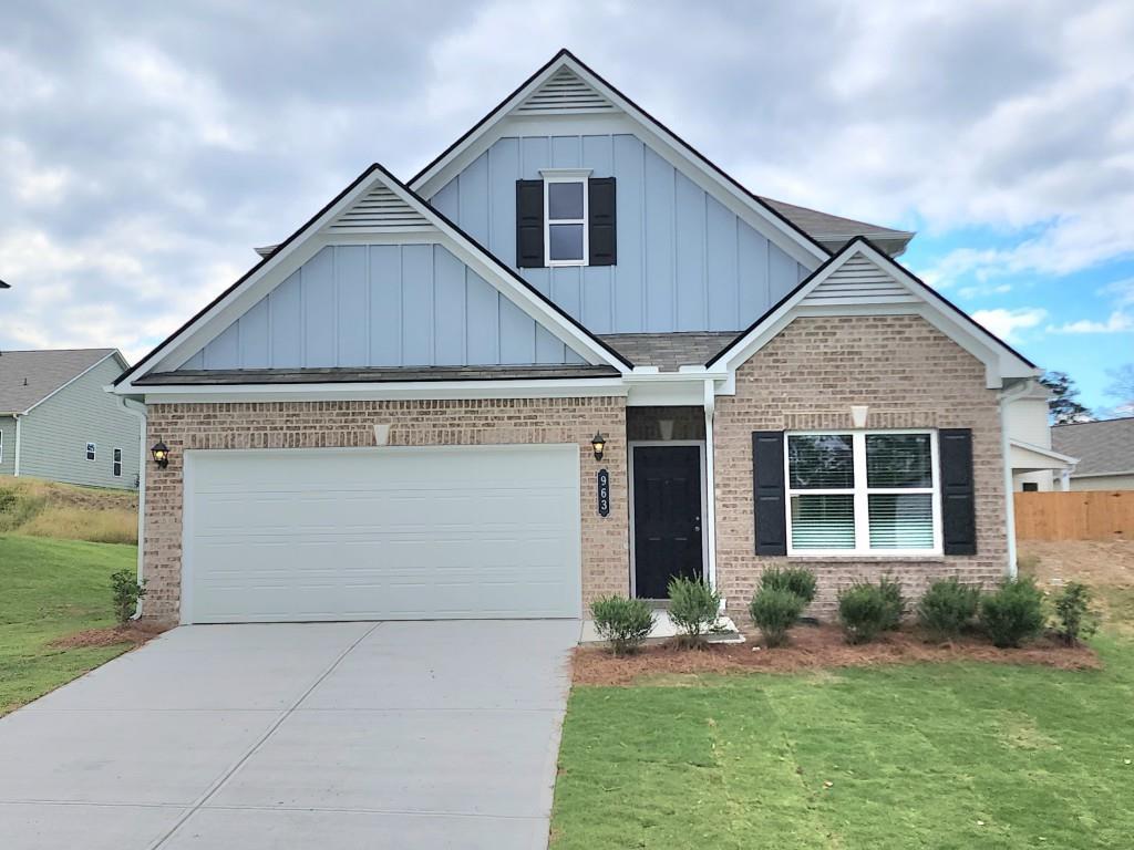 Move in Ready! The Caldwell built by Smith Douglas Homes in Victoria Heights! The Caldwell is ideal for those seeking the convenience of a main-level primary suite. A spacious family room with a modern linear fireplace flows seamlessly into the kitchen and opens to a covered rear porch, creating a comfortable and connected living space. The kitchen has upgraded appliances with gas cooking, upgraded cabinetry including 42" upper cabinets for additional storage, Quartz counters with a tile backsplash. A separate dining room is located just off the front entry. Vinyl plank flooring throughout the main living areas on the first floor. This floorplan is ideal for single-level living, with key areas just steps away including the laundry room. However, the versatile second floor offers added flexibility, featuring two additional bedrooms, a full bath and a generous loft. Extra windows have been added in the family room, stair landing and in the loft creating a lovely light-filled home. Both stories have Smith Douglas Homes signature 9ft ceiling heights. Photos representative of plan not of actual home being built. Seller incentives with use of preferred lender!!!