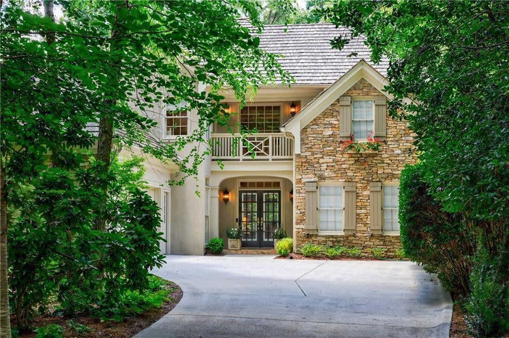 COUNTRY CLUB OF THE SOUTH quintessential Manor home is set on a private lot in one of Atlanta's most coveted gated communities, this classic hard-coat stucco and stone residence offers timeless charm and elegant curb appeal. A long, stately driveway leads to this beautifully designed home featuring a cedar shake roof and a charming Juliet balcony—setting the tone for the warm welcome inside. Step through double front doors into a soaring two-story foyer that introduces the home’s gracious layout. The formal dining room is banquet-sized, ideal for both hosting large gatherings and enjoying intimate dinners. The two-story great room is filled with natural light, showcasing a fireplace flanked by built-in bookcases and a wall of windows that invite the outdoors in. The heart of the home is the chef’s kitchen, featuring exquisite Taj Mahal quartzite countertops, Wolf appliances, Sub-Zero refrigerator, a walk-in pantry, and custom inset cabinetry with soft-close hardware. Adjacent to the kitchen, a cozy keeping room is surrounded by windows, while a spacious custom sunroom offers an additional main-level living area with tranquil views. The main-level primary suite is a true retreat, with direct access to the expansive deck and a luxurious marble-clad bathroom featuring marble floors, countertops, and backsplash. Two walk-in closets have been thoughtfully customized by California Closets. Upstairs, you’ll find three generously sized bedrooms—one with an en-suite bath and two that share an adjoining bathroom—all with large closets and plenty of natural light. The walkout terrace level is designed for both relaxation and productivity, including a large family room perfect for movie nights, a custom California Closets workspace with multiple built-in desks, and a flexible room ideal as a guest suite, gym, or activity space. There is also an unfinished area perfect for a workshop or future customization. Enjoy serene outdoor living on the main-level deck, complete with an electronic retractable awning for effortless shade. Experience resort-style living in the gated and amenity-rich Country Club of the South, nestled in the number one ranked US city of Johns Creek, Georgia.