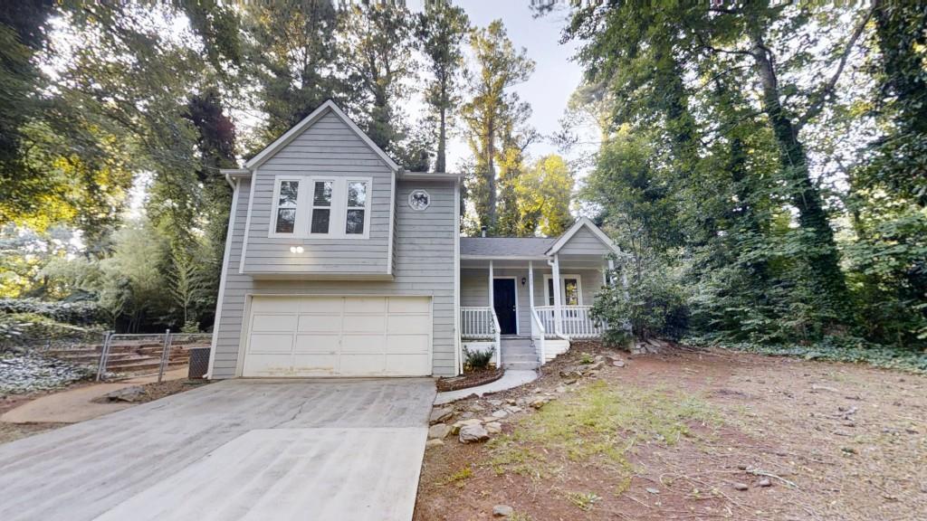 Welcome to this beautiful 3-bedroom, 2-bath split-level home in the desirable Emerald Forest neighborhood! Featuring durable LVP flooring throughout the main living areas and cozy carpet in the upstairs bedrooms, this home offers both comfort and style. Fresh paint throughout. The inviting family room boasts a cozy fireplace, perfect for relaxing evenings. The kitchen is equipped with crisp white cabinets, stone countertops, and stainless steel appliances ready for your next meal or gathering. The spacious primary bedroom is part of a smart split-bedroom plan that offers privacy and flexibility. Step outside to a large, fenced-in backyard with a rear patio ideal for outdoor entertaining, play, or simply relaxing. Conveniently located near major highways, shopping, and dining, this home combines quiet suburban living with easy access to everything you need. Don't miss the opportunity to make this well-maintained gem your new home!