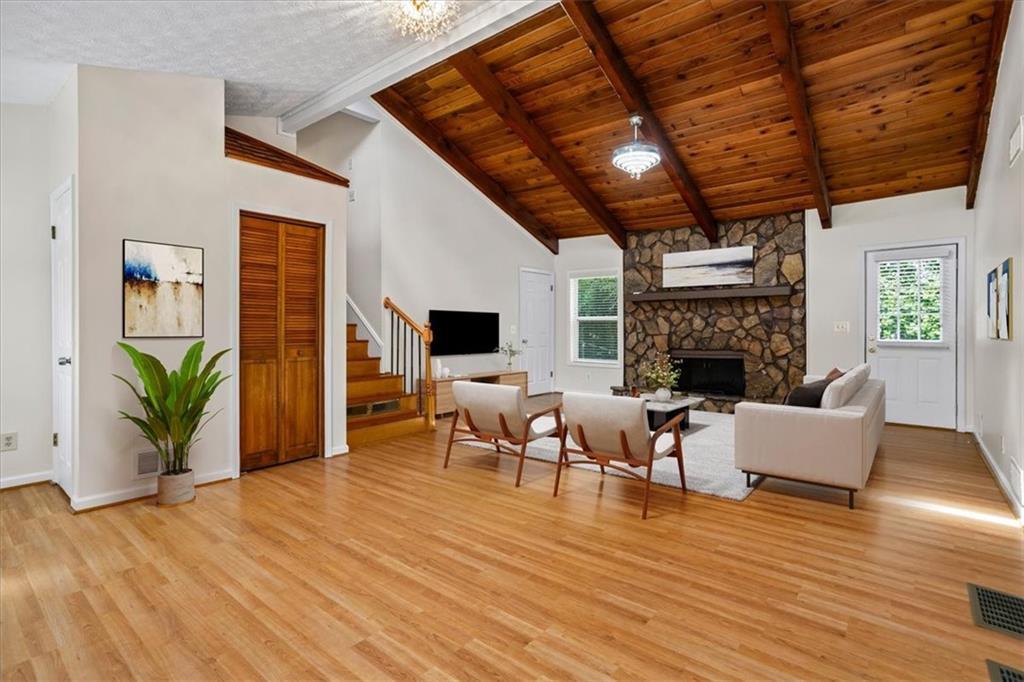 Discover your dream home in this stunning contemporary split-level property, perfectly situated in east cobb. NEW WINDOWS, FRESH INTERIOR PAINT , NEW GARAGE DOORS, NEW AC UNIT, All exterior pressure washed. As you approach, you'll be struck by the picturesque rose bushes and expansive FRONT YARD, perfect for outdoor relaxation. Inside, the soaring cathedral ceiling family room features a beautiful stone front fireplace, bathing the space in warmth and natural light. The sleek, REMODELED KITCHEN boasts European-style cabinets and stainless steel appliances, flowing seamlessly into the perfectly sized dining room. Upstairs, the expansive master bedroom and two additional bedrooms await, along with fully RENOVATED MASTER & GUEST BATHROOM. The lower level offers endless possibilities, with a generous room perfect for a game room, a fourth bedroom with a full bathroom, and a convenient laundry room. Outside, three expansive decks and a greenhouse beckon you to explore your creativity. All within walking distance to shops, Sprayberry Walk, and restaurants.