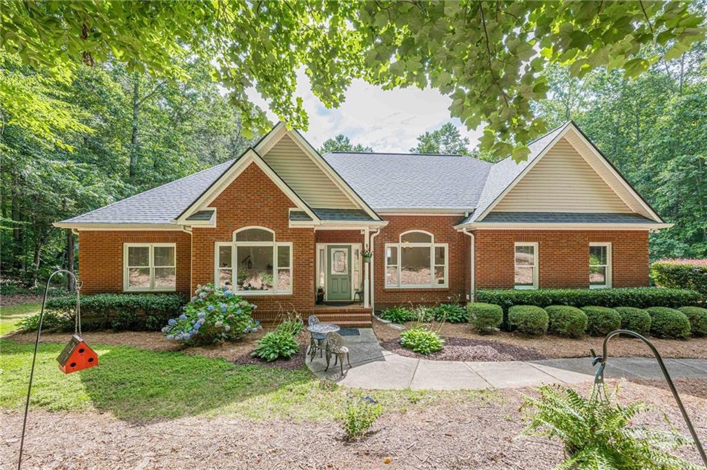 PRICE IMPROVEMENT! PRIVATE 4-ACRE RETREAT WITH CREEK & WORKSHOP IN HICKORY FLAT! Welcome to 1498 Pinyan Lane—a beautifully maintained four-sided brick home tucked away on 4 private, wooded acres in the heart of Cherokee County, just minutes from top-rated schools, shopping, and dining in the desirable Hickory Flat area. Step inside to soaring ceilings and natural light that fills every room. The main level offers a spacious dining room, a dedicated office or flex space, and a warm, inviting living room with a beautiful brick fireplace. From here, step out onto the renovated back deck, perfect for relaxing or entertaining while enjoying the serene, wooded surroundings. The kitchen features granite countertops, a large pantry, and a bright eat-in area ideal for family gatherings. Just down the hall, you’ll find a half bath and a large laundry room complete with a utility sink and extra storage. The primary suite on the main level includes a spacious ensuite and walk-in closet. Two additional bedrooms are also on the main level, connected by a Jack-and-Jill bathroom, and both feature large walk-in closets. The finished terrace level could easily function as a teen or in-law suite, complete with a large living area, kitchenette, bedroom, full bath, office/flex space (no egress), and access to a covered patio. Outside, you’ll find a massive 30’ x 40’ workshop with compressor lines and 200-amp power—perfect for hobbies, business use, or storage—as well as a 14’ x 35’ covered RV parking pad and three-car parking in the driveway. Don’t miss the picturesque creek and waterfall at the back of the property—an ideal spot to relax or explore. There’s even space to add a pool and create your dream backyard oasis. This rare property combines privacy, practicality, and beauty—your private paradise in Hickory Flat awaits!