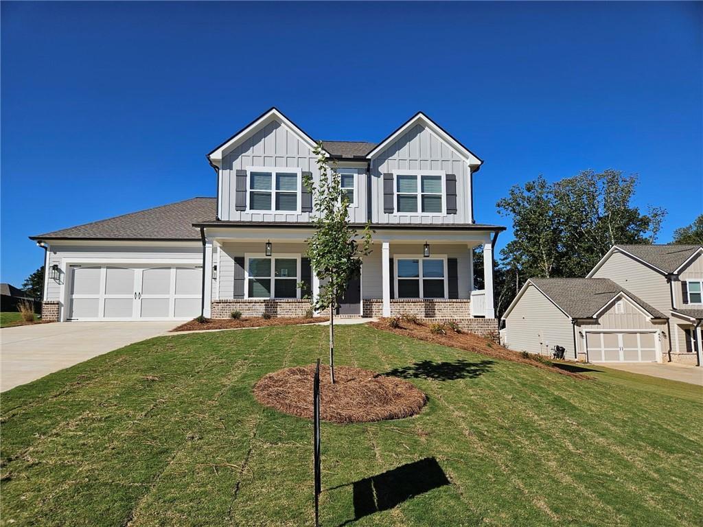 The Jackson Plan is a 4 bedroom / 3 bath home with formal dining room, study and guest room on the main level. The open kitchen with a no divided sink, double wall oven, 36 inch gas cooktop, large serving bar, breakfast area and great room with gas fireplace are perfect for entertaining. Huge pantry, and entry foyer are additional features on the main level. The Owner's retreat is located upstairs and boasts a trey ceiling, double vanity bath, separate shower and garden tub plus a generous closet. There are 2 additional bedrooms upstairs, both with big closets. Crown molding throughout the home. Patio will be screened in with a fireplace.**Ask about our Up to 30k Preferred Lender incentives** Will be ready November 2025