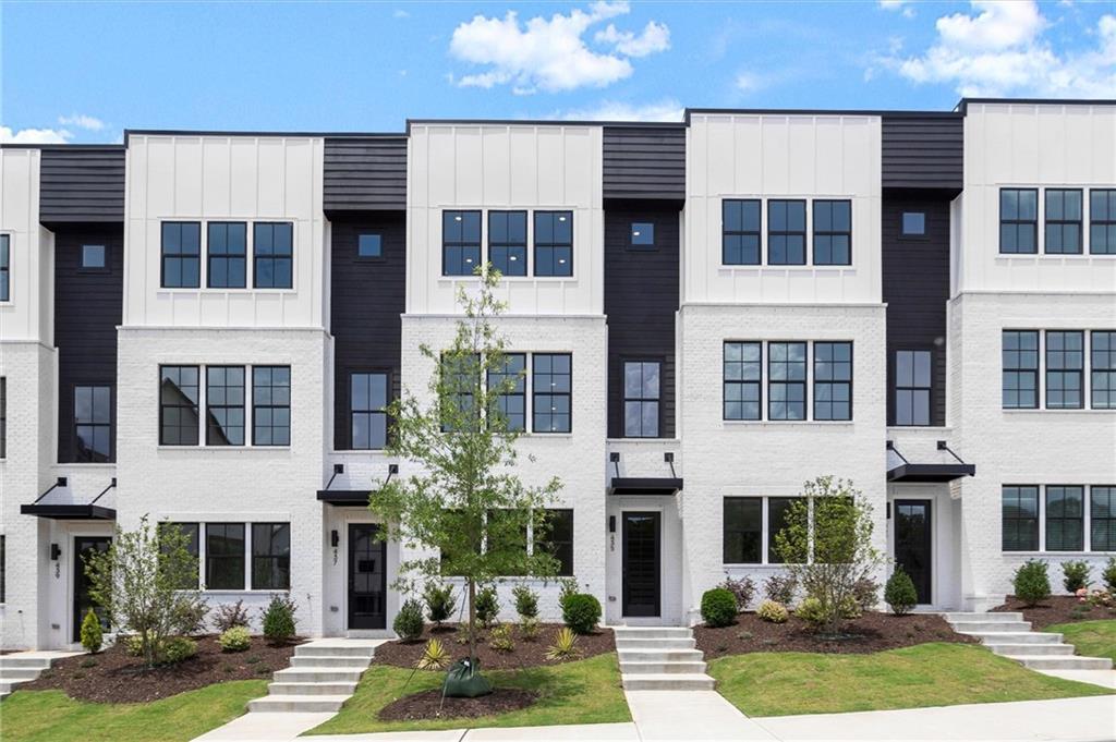 Introducing the Adeline, a Contemporary style townhome boasting 2,160 square feet of luxurious living space. With 4 bedrooms, 3.5 bathrooms, and three stories of thoughtfully designed interiors, this home offers the perfect blend of modern style and comfort. As you enter the first floor, you'll find a spacious guest suite complete with its own private bathroom, ideal for visitors or a home office. The entryway also provides access to the attached two-car garage, ensuring convenience. Ascend to the second floor to experience the heart of the home, an open concept living area designed for both relaxation and entertainment. The expansive living room, featuring 10 ft ceilings and large windows, seamlessly flows into the dining area and gourmet kitchen. The kitchen is a chef's dream, boasting Kitchen Aid stainless steel appliances, quartz countertops, sleek cabinetry and a generous island. The third floor is dedicated to privacy and tranquility housing the primary suite and additional bedrooms. The luxurious Primary Suite features a walk-in closet and spa-like en-suite bathroom with a raised maple dual vanity and glass enclosed shower. Two additional well-appointed bedrooms share a stylish full bathroom, and a laundry room on this floor adds to the home's functionality. Located in The Gathering, a Vibrant new community, just minutes from downtown Alpharetta, Avalon and top-rated schools as well as prime access to the Alpha Loop. Enjoy our community amenities such as a Community Garden, Firepit and Dog Park. This home provides the ultimate in modern suburban living. Experience the perfect combination of style, comfort and convenience!! Agent is on-site Monday, Tuesday, Thursday, Friday & Saturday (10:00-6:00) and Wednesday and Sunday (1:00-6:00).