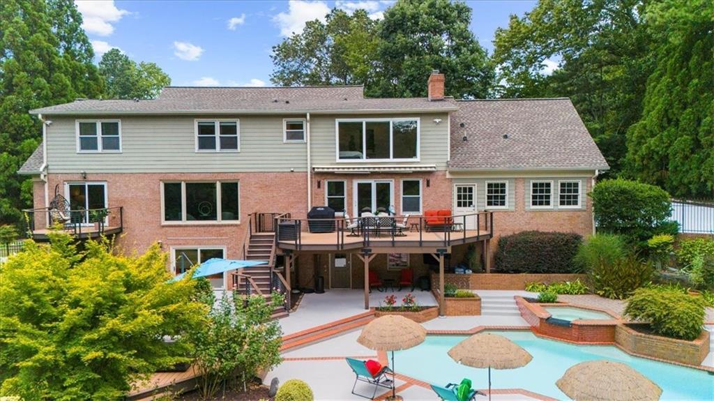 Nestled on a private, one-acre lot just moments from Highway 400 and the serene Chattahoochee River, this fully remodeled luxury estate offers a rare blend of elegance, privacy, and convenience. Located in the exclusive Huntcliff community—home to the Cherokee Golf Course and Cherokee Country Club— Step inside this breathtaking 3-story, 5,000+ sq ft residence and be welcomed by soaring floor-to-ceiling windows, an open-concept design, and flawless attention to detail. The main living and dining areas are flooded with natural light, complemented by a beautifully updated kitchen featuring a granite stone backsplash, and sleek finishes throughout. Every subfloor has been upgraded and topped with new flooring, and the entire interior has been freshly painted. Downstairs, the finished basement offers a full in-law suite or guest bedroom with its own bathroom and a naturally cooled wine storage room—Includes designated entertainment areas and a spacious unfinished section ideal for extra storage. all with views to the lush backyard. Outside, enjoy your own private paradise: a professionally landscaped backyard with mature greenery, a heated saltwater pool, Jacuzzi, and tranquil seating areas in a park-like setting—perfect for entertaining or quiet retreat. Additional upgrades include ,Brand-new upper-level AC unit (installed June 2025, Smart home technology throughout, New electrical panel, Abundant recessed lighting for modern ambiance This one-of-a-kind property combines timeless charm with today’s luxury updates—all in one of North Atlanta’s most sought-after communities.