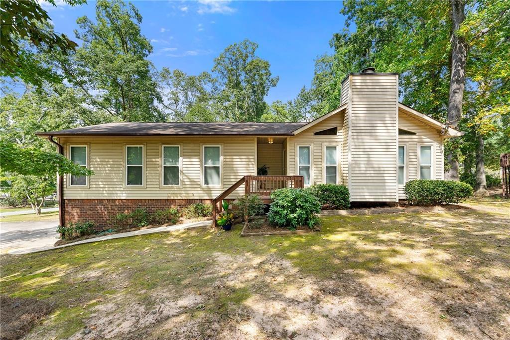 Welcome to this adorable 3-bedroom, 2-bath home featuring a bright and airy living room with a vaulted ceiling and striking dark-stained wooden beams that add warmth and character. The eat-in kitchen offers crisp white cabinetry, granite countertops, and plenty of space for casual dining. The oversized master suite boasts a walk-in closet and a private bath with a shower, while two generously sized secondary bedrooms share a full hall bath. Set on a spacious corner lot, this property offers a huge fenced backyard – perfect for pets, play, and entertaining. Brand-new carpet adds a fresh feel throughout, while the large garage and unfinished basement provide abundant storage and endless possibilities for future expansion. Conveniently located near shopping, dining, and major highways, this Mableton gem blends charm, functionality, and room to grow.