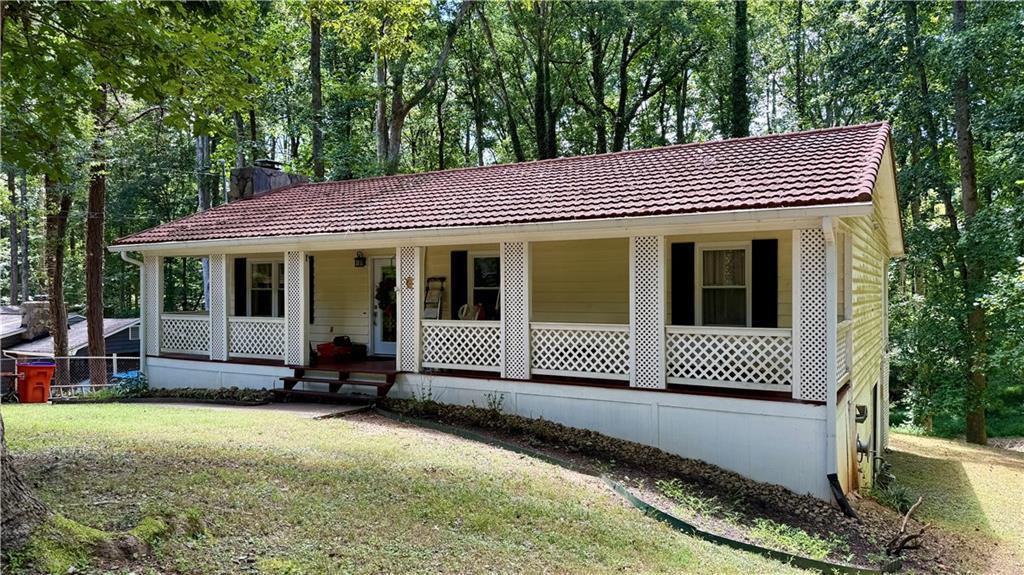 Recent price improvement! Home warranty included! Charming Mountain-Style Ranch with Sunroom, Walkout Basement & Bonus Storage! Well-built and beautifully maintained ranch home on a quiet dead-end street with no through traffic—just minutes from shopping, dining, and interstates, yet nestled in a peaceful, retreat-like setting. Located in the highly sought-after Creekview High, Creekland Middle, and Avery Elementary School district. This home features a Gerard fireproof metal roof designed to look like clay tile, locally sourced cedar siding, and gorgeous Brazilian teak hardwood floors throughout most of the interior. The expansive sunroom is a showstopper, offering walls of windows and rare purpleheart hardwood flooring—perfect for relaxing or entertaining. Enjoy a fully updated bathroom with double vanities, tile flooring, and a new tub. The kitchen includes solid wood cabinetry, and appliances are included. One bedroom is currently used as a custom walk-in closet, easily converted back to a full bedroom if desired. New vinyl windows, extra insulation, and quality construction throughout ensure year-round comfort. The home also boasts a full walkout basement with excellent potential for finishing, storage, or workshop use—plus a large shed located beneath the sunroom, providing even more bonus storage space. This unique home blends character, craftsmanship, and convenience—all in a top-rated school district.