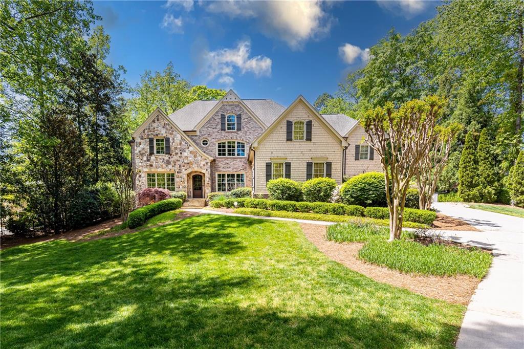 Surrounded by 20 acres of a wooded park, this custom home on more than 1 acre, designed by William Stewart, offers an exquisite blend of form and function in a private yet incredibly convenient setting. The walk-out flat backyard features an elegant pool and hot tub with soothing waterfall feature, a firepit and a pool house with full bath and dining area (all added in 2012). Inside, the six bedrooms include ensuite bathrooms and walk-in closets, with the primary suite featuring a generous sitting room and two tremendous walk-in closets. High-end details are everywhere, including a custom-designed wrought iron railing on the continuous three-level staircase; quarter-sawn hardwood floors on the first and second levels; built-in bookshelves and desks; overly generous, discreet storage throughout the home; and so much more. The custom kitchen by Design Galleria features a Sub-Zero refrigerator and two refrigerator drawers; a Dacor six-burner cooktop; two full-size JennAir ovens; a warming drawer; two full-sized dishwashers; and a walk-in pantry. Special features include a two-story living room with sophisticated centerpiece fireplace; gorgeous dining room; a large, informal keeping room attached to the kitchen; a study; mudroom with built-in cabinets; screened porch with fireplace, vaulted ceiling and wooden beams; formal and informal powder rooms; two laundry rooms; and a three-car garage with electric car charger. In addition, you'll love the huge finished basement with unusually high 10-foot ceilings featuring a large TV room; workout room furnished with professional fitness equipment; art/craft/hobby room; bedroom with ensuite bathroom; an additional half bathroom; and a giant unfinished storage area. This meticulously maintained home is a unique, high-end, livable treasure ideally located on a quiet, dead-end street in Sandy Springs with convenient access to everything!