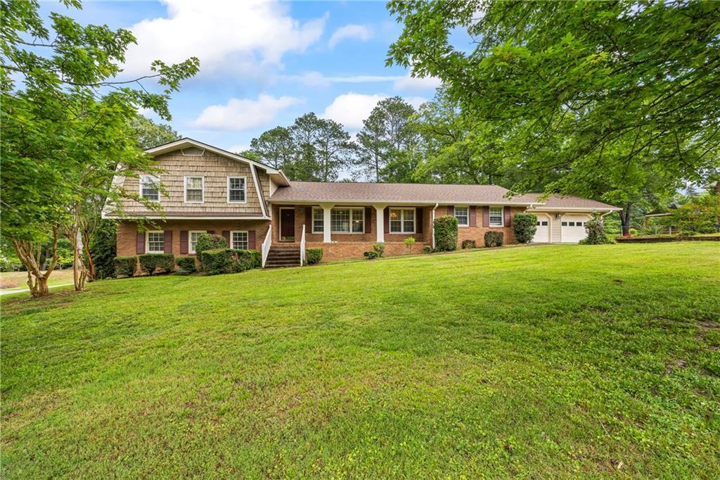 **NO HOA!!** Spacious 5-bedroom, 3-bath brick home on a desirable corner lot, ideally located just steps from the new middle school and minutes from shopping, dining, and parks. This well-maintained residence features an open-concept layout with a generous family room showcasing a masonry fireplace and custom built-ins. In this split level room, the formal dining room easily seats 12, perfect for gatherings, while the sunroom and screened-in porch offer year-round enjoyment. The kitchen has solid wood cabinetry, ceramic tile flooring, and a cozy breakfast area. A large laundry room and oversized utility room provide ample space for a home office, craft area, or recreation room. Downstairs, a private 2-bedroom, 1-bath suite offers flexible living arrangements and opens to a stunning backyard retreat. Enjoy a beautifully landscaped outdoor oasis complete with a luxurious 20x40 in-ground pool ideal for relaxing or entertaining.