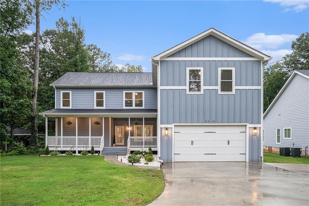 Welcome to 5410 Beth Drive, a stunning, recently built (2022) farmhouse-style home nestled on nearly an acre of private, wooded lot. Boasting an elegant living space, this 4-bedroom, 3.5-bath residence features a main-level primary suite with vaulted ceilings and an oversized freestanding tub. Enjoy the chef’s kitchen with induction cooktop, large island, pantry, and abundant storage—it seamlessly flows into a dramatic great room anchored by a cozy fireplace. Upstairs, three additional well-sized bedrooms and a loft offer flexible space for an office, study, or playroom. With soaring 10-foot ceilings, hardwood and tile flooring, a grand foyer, and a thoughtful mud-room/laundry off the garage, every detail impresses. The oversized covered porch overlooks serene, wooded privacy. Located minutes from Atlanta’s Airport, The Battery, and Downtown, this home combines upscale finishes, spacious design, and a prime Austell location.