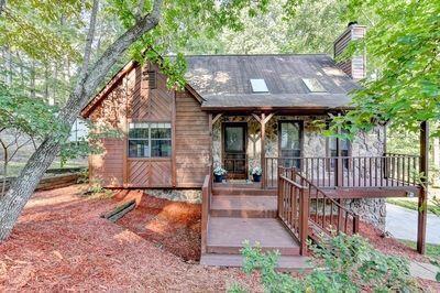 Welcome home to this lovingly maintained home by the same owners for the past 28 years! This home is truly move in ready - it's been freshly painted inside since the sellers moved out; the carpets have been cleaned; fresh mulch spread in the front and backyard; HVAC last serviced in July and thermostat replaced. The windows were replaced, and the deck was extended and partially covered in 2011; the kitchen and primary bathroom remodeled in 2015; upstairs carpet replaced in 2021 and primary bedroom carpet replaced in 2023; exterior of the house was repainted in 2023 and new garage doors installed in 2023 as well. This home offers the opportunity to own in award-winning Lassiter High School district, with a Roswell address (but lower Cobb County taxes), with no HOA. The stone accent on the exterior is the same stone as the floor-to-ceiling fireplace in the living room and is absolutely stunning in person. You'll also love the vaulted ceilings in the living room (with the incredible stone fireplace) and the primary bedroom which really make the rooms feel incredibly open. The sellers will tell you that they loved the home because it feels like a cabin in the woods, but right in the middle of Roswell. They loved the peace of the front porch, as well as the huge rear deck and the private, wooded view. One of their favorite spots was the swing under the deck and they've left the swing for the owners to fall in love with as well.