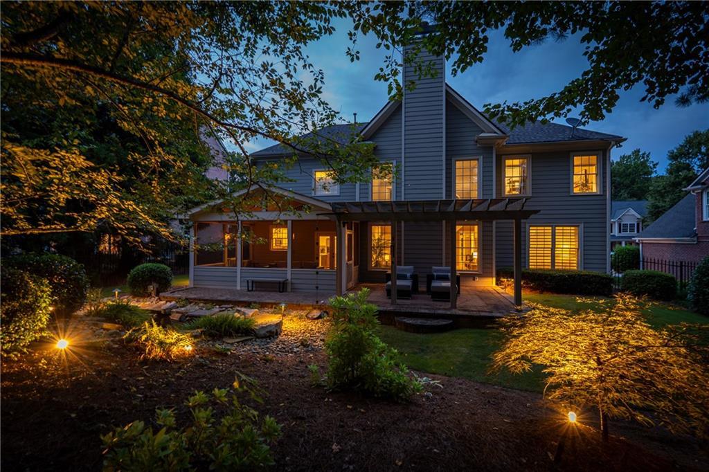 ENJOY GOLF COURSE VIEWS FROM YOUR SCREENED IN PORCH! LOCATED ON THE 4TH HOLE, THIS HOME FEATURES AN UPDATED, WELL-EQUIPPED KITCHEN, OVERSIZED PRIMARY SUITE, AND LUSH LANDSCAPING. Throughout the home you'll find a neutral color palette, hardwood flooring, and updated lighting. Soaring ceilings in the family room allow for plenty of natural light and a floor-to-ceiling stone fireplace. The kitchen has newer white cabinetry, stone countertops, newer appliances and a large island. A guest suite on the main level offers pretty views of the backyard and golf course as well as a full bathroom. Rounding out the main floor is a formal dining room and a formal living room that could easily be used as an office. Upstairs are four large bedrooms including the primary suite. The suite's high ceilings, separate sitting area, generously sized closet with custom organizers, and bathroom with new quartz countertops make it the perfect place to retreat and unwind at the end of a busy day. A well-manicured backyard features mature landscaping with lighting, WIFI-enabled irrigation, wrought-iron fencing, a pond with a waterfall, and a stone patio covered by a pergola. Unlike many homes in the area, this home features a flat lot with plenty of room for playing or gardening. This home has been well-maintained and includes a whole-home surge protector and updated HVAC that includes a separate zone for the primary suite. This is an excellent opportunity to take advantage of the country club lifestyle Windermere offers at a great value. Enjoy the swim, tennis, golf community that also includes pickleball, basketball and a full time activities director! There is always something going on in Windermere, fun for all ages! This sought after community is also close to shopping and dining at The Collection, Halcyon, Cumming City Center and along highway 20 and Marketplace blvd. Great parks, dog parks and Big Creek Greenway are all nearby. Top Forsyth county schools!