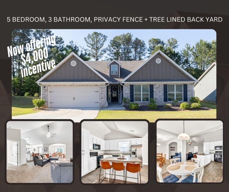 **** NOW OFFERING 4K towards buyers closing costs***GORGEOUS HOME! BETTER THAN NEW BOASTS FENCED BACK YARD AND REFIRGERATOR PLUS BLINDS THROUGHOUT. LESS THAN 1 MILE FROM SCHOOLS! MOVE IN READY! Open floor plan with high ceilings, large kitchen island/bar with granite counters. Split bedroom plan for roommate/in-laws/teen/private office. Generously sized secondary bedrooms, one features connecting bathroom making this home perfect for multigenerational or roommate living plans. Laundry room. Well maintained, 5 years young, and ready for you to move right in! Approximately 5 miles to Bethlehem Shopping Center with Target, Publix, Home Depot, Hobby Lobby, Plenty of dining options as well as AMC Theater. Convenient access to highway. SCHEDULE TODAY!** Incentive is Subject to seller approval and conditions