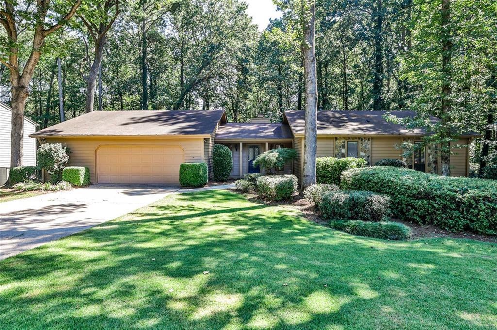Back on Market as Buyer terminated at No Fault to Seller. SELLER SEEKING OFFERS for this amazing opportunity in Chimney Springs, one of East Cobb’s most sought-after communities! This large ranch-style home is situated in the heart of the neighborhood on a private lot adjacent to the bike and walking path which leads to Chimney Lake and neighborhood amenities. Ready for you to immediately make it your own, or live in as-is and personalize over time! Walking in the front door, you are greeted with beautiful hardwood floors overlooking an expansive living room with vaulted ceiling and stone fireplace as the centerpiece, an adjacent wet bar, and dual sliding glass doors leading to the back deck. The separate dining room connects to the living room for seamless entertaining and features board and batten and a modern light fixture. The spacious eat-in kitchen and breakfast area with updated light fixtures and beadboard wainscoting provide views of the private backyard through sliding glass doors, allowing access to the oversized deck, perfect for relaxing with your morning cup of coffee or grilling in the evenings while entertaining friends! Laundry room with sink connects the garage to the kitchen, creating an ideal drop spot and mud room. The primary suite has a vaulted ceiling with wood beam accent, two spacious closets and ensuite bathroom with recently updated shower. Two additional bedrooms and additional full bathroom complete the main level. The terrace level basement has two large finished rooms ideal for a workout space, home office or playroom and two additional unfinished rooms for storage or an opportunity for you to finish as your own. Outside of the basement door, mulched side yard is ready for a fire pit or a swing set! Natural path in the backyard creates a peaceful retreat with room for you to customize the almost half an acre to your liking. Interior painted 2025, exterior painted Sept 2021, newer HVAC system and newer water heater. Chimney Springs is a very social and amenity-rich neighborhood. Take the trail adjacent to the home and enjoy the swimming pool, clubhouse, tennis and pickle ball courts, lake with bike and walking path, playgrounds, basketball court and activity field. Zoned for top-rated Pope High School, Hightower Trail Middle and Tritt Elementary. This Chimney Springs home is situated within minutes from Avenue East Cobb, Downtown Roswell and offers unmatched convenience in the heart of East Cobb. Welcome Home!