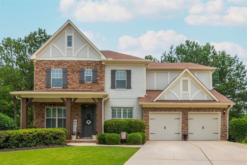 Welcome to this stunning David Weekley built, craftsman home on arguably one of the best cul de sac, private lots in the highly desirable Telfair neighborhood! The recently painted exterior showcases neutral, designer colors that complement the craftsman architecture. The foyer is flanked by the large, open dining room and a front flex room which can be used as an office, play room, or 6th bedroom. With gleaming hardwoods extending throughout the main level, the wide open floorplan from the kitchen and eating area to living room offers the perfect space for entertaining! The kitchen showcases white cabinetry and granite countertops with stainless appliances. Off the kitchen and eating area is a stunning extended covered deck with wood paneled ceiling and recessed lighting. The view from the deck is second to none with the oversized back yard which backs to a wooded space unable to be developed! Upstairs, the spacious owner's suite is a perfect retreat with the en suite boasting a large soaking tub, double vanities and tiled shower. There are three additional bedrooms and two full bathrooms on this level as well as a large loft space. The finished basement with stained concrete flooring is a large open space perfect for a living area and game tables. A bedroom and full bathroom can be found in the basement as well as a kitchenette and large, unfinished storage space. The doors lead out to the back yard with fire pit and endless possibilities. With award winning schools and close proximity to GA400, Vickery Village, The Collection, Halcyon and the new Cumming City Center, this home truly has it all!