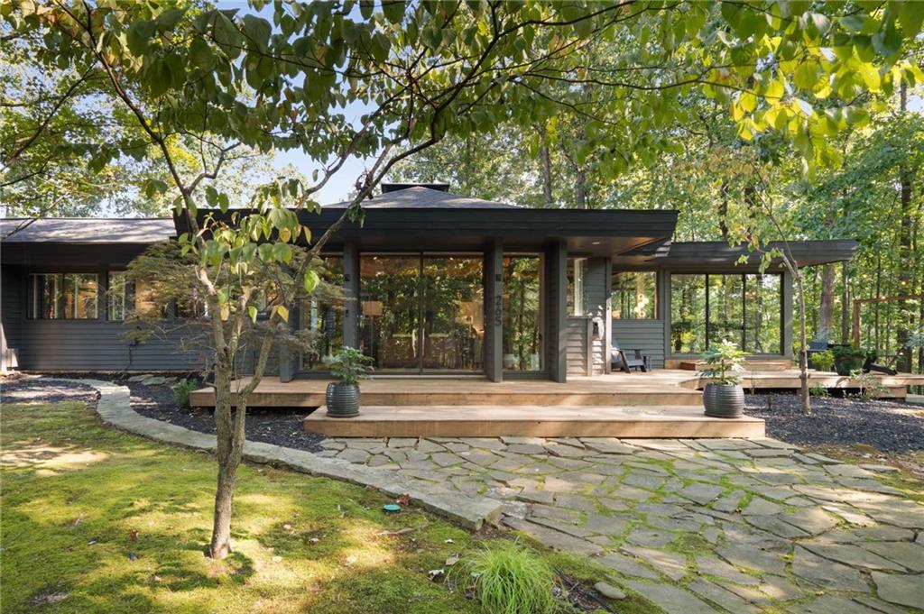 Designed by Robert Green, a noted apprentice of Frank Lloyd Wright, this midcentury masterpiece seamlessly blends organic architecture with modern luxury. Signature elements—vaulted tongue-and-groove ceilings, walls of glass, and a dramatic fieldstone fireplace—create a timeless connection to nature, with multiple decks and sliding doors opening the home to its wooded, one-acre hilltop setting. This property has been recently enhanced with a backyard transformation featuring a heated pool and spa with water features, a remote-controlled cover, and built-in Sonos sound for resort-style entertaining. The expansive five-car garage is equipped with EV charging, while smart home systems provide phone-controlled automation of lighting, sound, pool/spa, irrigation, security, and HVAC. Recent upgrades include a new tankless water heater, whole-house AV system with retractable projection screen, LED perimeter lighting, Lutron controls, encapsulated crawl space, and an overhauled HVAC system with HEPA filtration and dehumidifier. Professionally installed exterior lighting, sealed decks, and a propane fire-pit add to the home’s ambiance. Offering resort-style living every day, this rare Robert Green residence combines architectural pedigree with modern amenities—all just minutes from I-285, top-rated local schools, shopping, and dining.