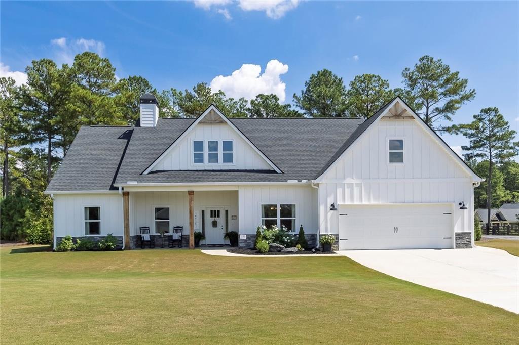 Welcome Home! This charming modern farmhouse has everything you’ve been looking for. Relax on the covered front porch with your morning coffee, or enjoy the private backyard patio for evening get-togethers. Inside, you’ll love the open floor plan that makes entertaining easy, and the split-bedroom design gives the Owner’s Suite extra privacy. There’s even a bonus room off the living area—perfect for a home office, playroom, or cozy den. The spacious kitchen is the heart of the home, featuring a huge center island with quartz countertops—just right for casual meals or holiday gatherings. All of this is tucked into a small, friendly neighborhood where neighbors feel more like friends. Nearly $30k spent in landscaping makes this home even better than new. Don't let this one get away!