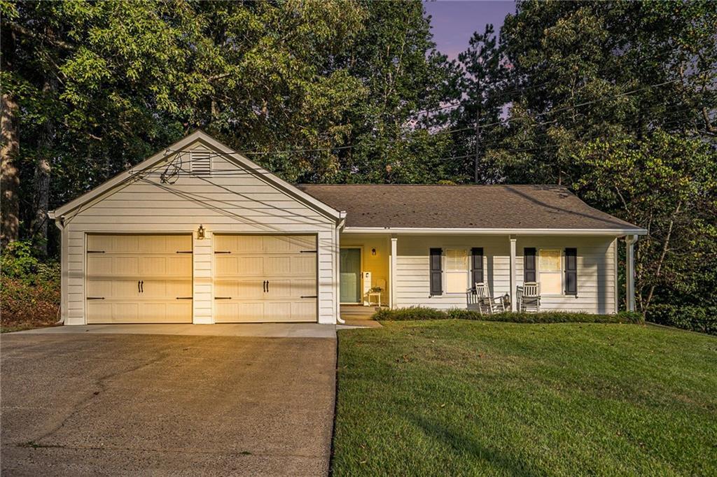 Cute cozy one level ranch on .38-acre lot conveniently located near Woodstock and all kinds of shopping and restaurants! New in the last 2 months: Hardie Plank siding, vinyl windows, electric panel and exterior paint. New in 2022: 7 interior doors, restored kitchen cabinets, subway tile backsplash, dishwasher, kitchen sink, 3 ceiling fans, main bath toilet and LVP in 3 bedrooms. Large paver patio with retainer wall and approximately 10x12 storage building in back yard. The 2-car garage has a wall about halfway across making 2 rooms for an office, storage or other uses. This is a non-load bearing wall and can be easily removed if you would rather have a garage to park in. It is on public sewer, no HOA fees and no rent restrictions!