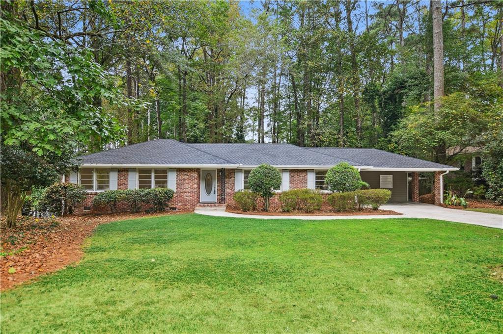 Charming Updated Ranch in a Peaceful, Walkable Neighborhood! Welcome to this beautifully maintained ranch-style home that exudes classic charm and modern updates. Nestled on a quiet, tree-lined street in a highly desirable neighborhood, this 3-bedroom, 2-bathroom gem offers the perfect blend of comfort, style, and convenience. Step inside to discover fresh interior paint and stunning luxury vinyl plank flooring throughout. The renovated kitchen is a true showstopper, featuring new stainless-steel appliances, granite countertops, and crisp white cabinetry—ideal for cooking and entertaining. Open to the kitchen is a cozy family room featuring a convenient electric fireplace and views to the large, fenced backyard. Both bathrooms retain their charming original tile, offering a touch of vintage character. Major systems have all been updated for peace of mind, including a new roof, new HVAC, and new water heater. Out back, you'll find a spacious, two-story insulated storage building with electricity—perfect for a workshop, art studio, home office, or simply extra storage space. Located in a friendly community where neighbors regularly stroll with their dogs, this home is just minutes from Northlake’s best shopping, dining, and amenities. Don’t miss your chance to own this move-in-ready home in an unbeatable location!