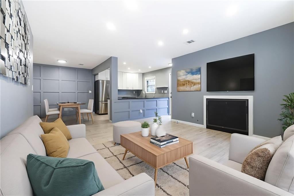 Convenient to I-75/I-285, this updated condo showcases a rare open floorplan for the community. A sleek, modern kitchen overlooks the other main living areas including a dining area with custom accent wall, living area with fireplace and a sun room with three walls of windows and access to the covered patio. The primary bedroom features a custom walk-in closet system, and the secondary bedroom has direct patio access. The unit’s bathroom has been upgraded with modern tile floor, oversized vanity and tile shower with glass door. The utility closet with in-unit laundry is also well-sized. Great flow and plenty of updates. Community swim + tennis. Minutes from all the Battery has to offer!