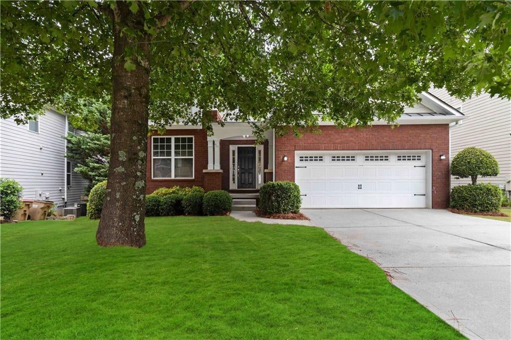 LAMBERT HIGH SCHOOL 3765 square foot approx PLUS unfinished basement home with 5 bedrooms & 4 full baths. Most sought after location, off 141 & mins from Johns Creek Emory. Swim/tennis community. walk to shops/restaurants!!! Enter the home from a covered porch to an open concept living/dining combo. Family Room with a fireplace and open to breakfast & kitchen. There are two full bedrooms on main level connected with a full bath/shower perfect for a guest suite and second one for an office on main level. Walk out to a deck which over looks one of the best & biggest backyards in the community. Wooded/useable/flat & gorgeous. Iron rails & a curved wall take you upstairs to a gorgeous, hardwood loft perfect for a recreation room/play area. Over sized master connects you to Laundry, a double vanity master bath. Two more bedrooms with attached baths.